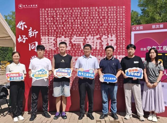 “璀璨青春,電啟新程”。這里的每一處細節都充滿溫度,既有領導的殷切囑托與暖心問候,也有學長學姐的耐心指引與微笑守候,“與電氣的第一幀合影”,定格2025級學子嶄新的夢想起點。