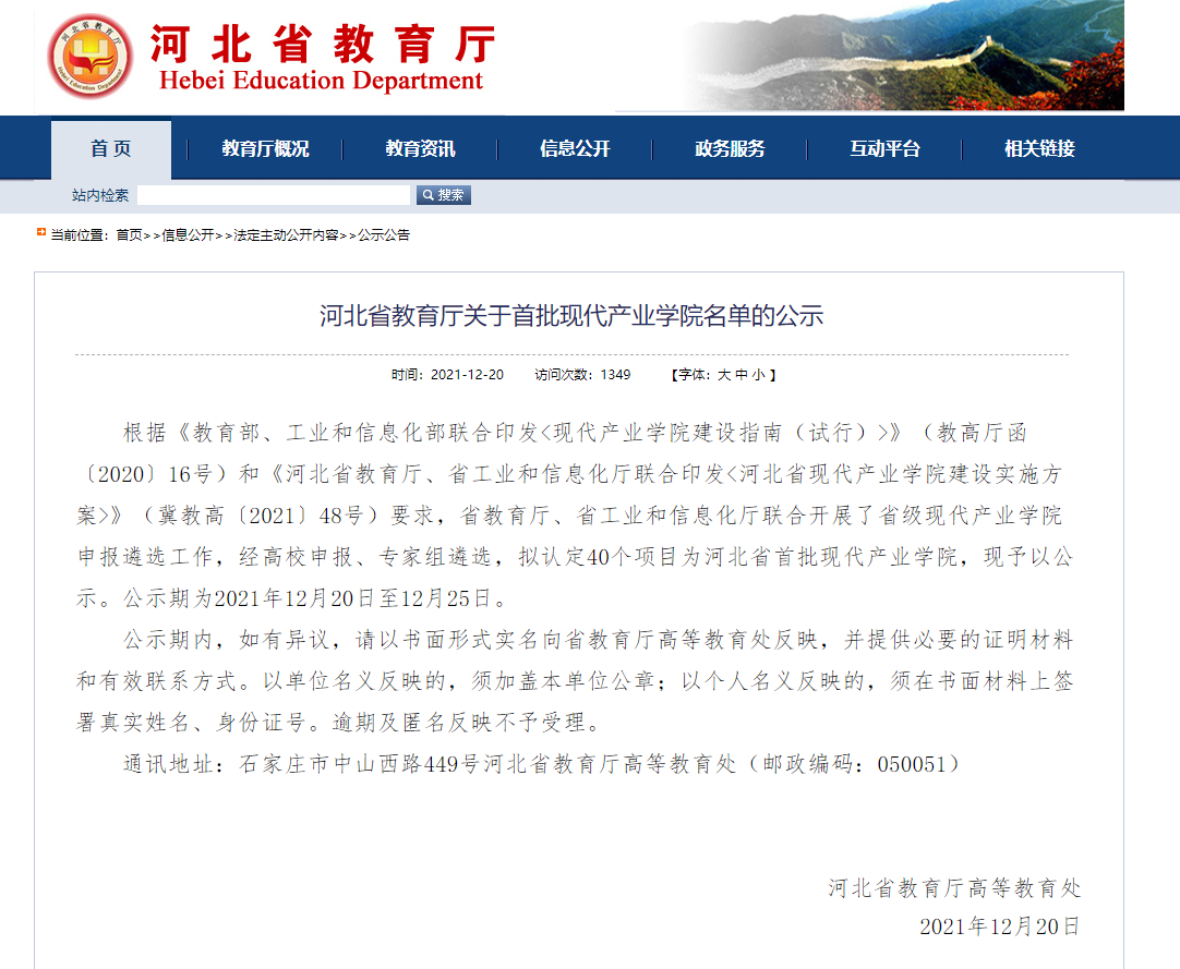 此外,智能汽車產業學院與電子信息現代產業學院、先進裝備金屬材料產業學院共同入選河北省首批現代產業學院。