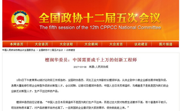 檀潤華委員回應記者道:“中國人去日本買保溫杯不是因為我們生產不出來,而是過去大家對物質生活要求不高,有個普通杯子就行。現在的物質豐富了,對產品的要求自然也高了。一旦我國的企業意識到大家的需求,很快就能趕上來。”