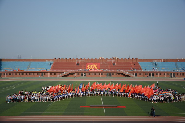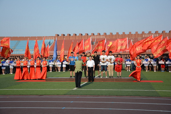 劉兵校長在開幕辭中回顧并肯定了學校過去一年來在體育教育和體育文化活動上的新成績和新進展。他希望參加本次運動會的全體運動員發揚“更高、更快、更強”的奧林匹克精神,賽出風格、賽出水平,爭取運動成績和精神文明雙豐收;希望全體裁判員能夠做到“嚴肅、認真、公正、準確”,全體工作人員能夠通力配合,熱情服務,力爭把本屆運動會辦成一個安全、熱烈、節儉、隆重的體育盛會。隨后,體育部王一晨老師、天津市大學生標槍冠軍、鉛球亞軍吳羽倫同學分別代表裁判員、運動員宣誓。