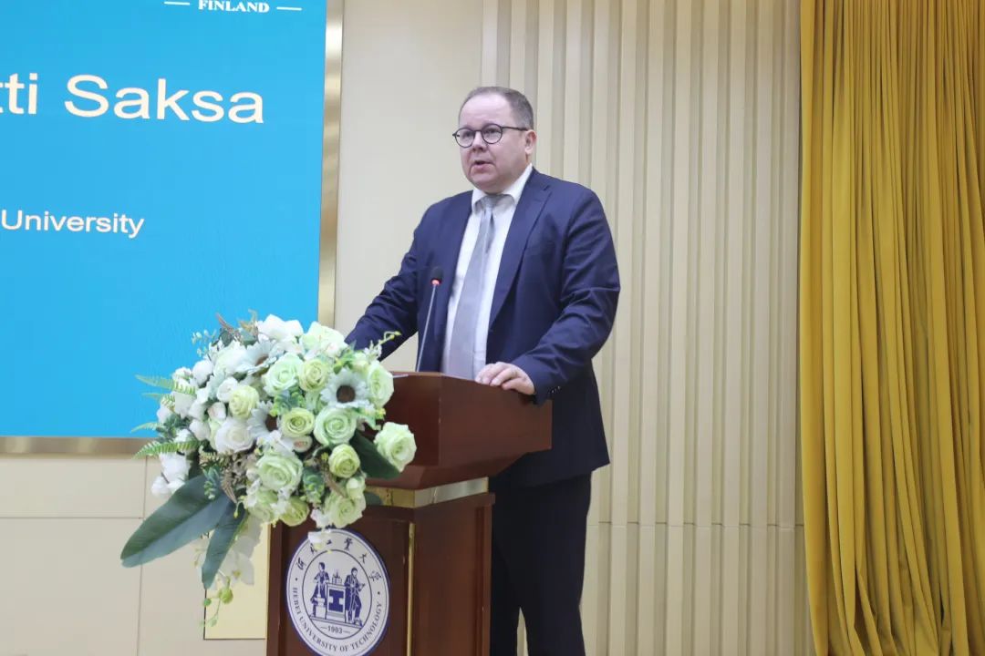 LUT大學(xué)校長尤哈-馬蒂·卡萊爾沃·薩克薩(Juha-Matti Kalervo Saksa)在致辭中首先介紹了芬蘭LUT教育集團(tuán)下的LUT大學(xué)和LAB大學(xué)的合作關(guān)系與歷史,兩所大學(xué)高度共享設(shè)施和資源,并為河北工業(yè)大學(xué)芬蘭校區(qū)提供支撐。他高度評價(jià)了同河北工業(yè)大學(xué)共建芬蘭校區(qū)的辦學(xué)成果,并表示芬蘭校區(qū)的成功源于雙方團(tuán)隊(duì)的緊密協(xié)作,未來將進(jìn)一步深化兩校合作,推動(dòng)更多創(chuàng)新項(xiàng)目落地。