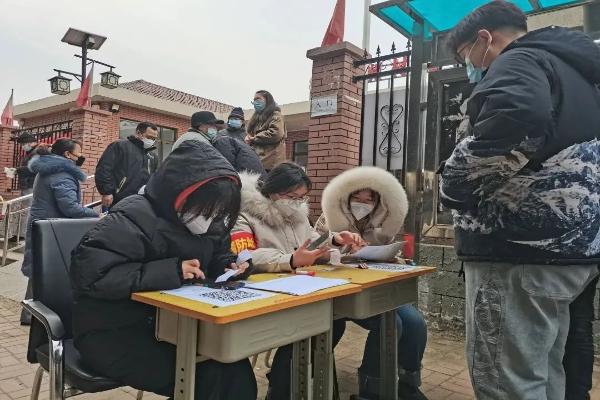 材料科學(xué)與工程學(xué)院的王寧同學(xué)在聽(tīng)到全員需要準(zhǔn)備核酸檢測(cè)后,就立馬報(bào)名參加了村里的志愿者。1月10日早晨,她急忙趕往村委會(huì),和幾個(gè)同齡人一起維持現(xiàn)場(chǎng)秩序,登記村民信息,登記系統(tǒng)崩了,他們就手動(dòng)錄入,村民們一句句孩子們辛苦了讓她覺(jué)得格外溫暖。登記村民信息,維持篩查現(xiàn)場(chǎng)秩序,她不畏寒風(fēng),勇往直前。“有一分光發(fā)一分熱,作為一名大學(xué)生,我們應(yīng)該為這個(gè)有溫度的社會(huì)、國(guó)家貢獻(xiàn)出自己的一份力量。”