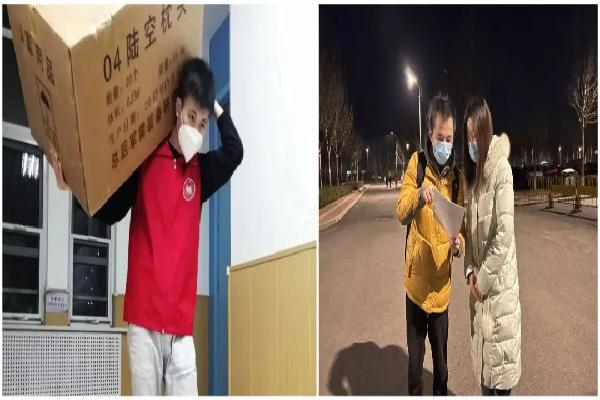 在體育中心,他們主動(dòng)分組集結(jié),完成各點(diǎn)位物資準(zhǔn)備組織人員入場(chǎng),緊張但有序。從下午兩點(diǎn)到晚上十二點(diǎn),配合防疫工作人員完成了對(duì)北辰校區(qū)的核酸檢測(cè),結(jié)束時(shí)早已經(jīng)凍成“冰棍人”。