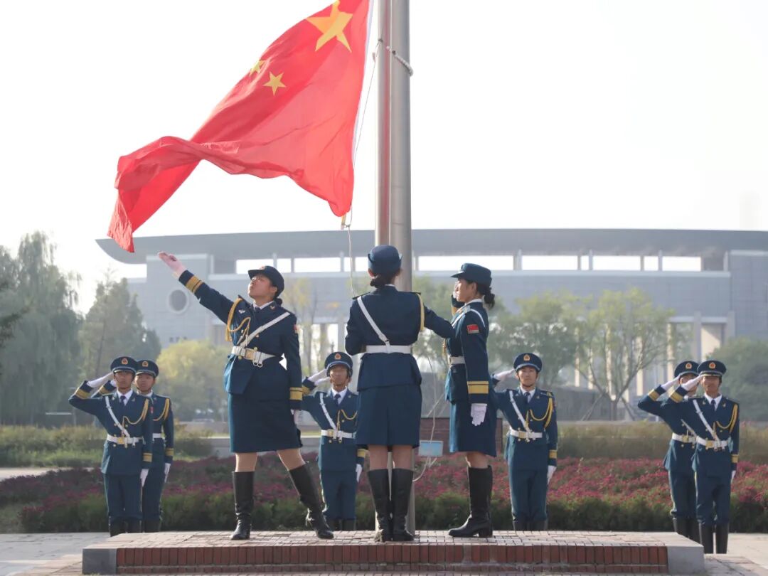 伴隨著激昂雄壯的《義勇軍進行曲》,鮮艷的五星紅旗冉冉升起,迎風飄揚。全體師生莊嚴肅立,面向國旗行注目禮,齊聲高唱國歌,表達對偉大祖國的崇高敬意和美好祝福。