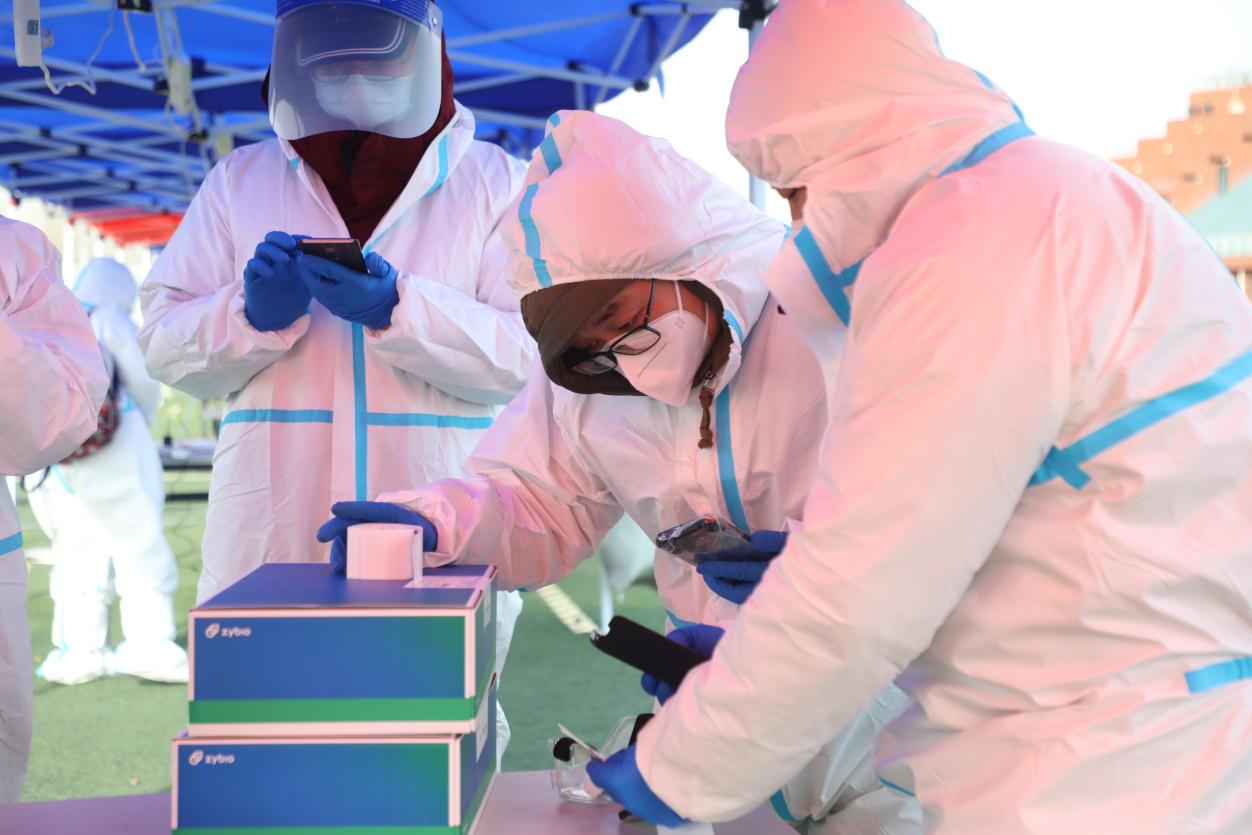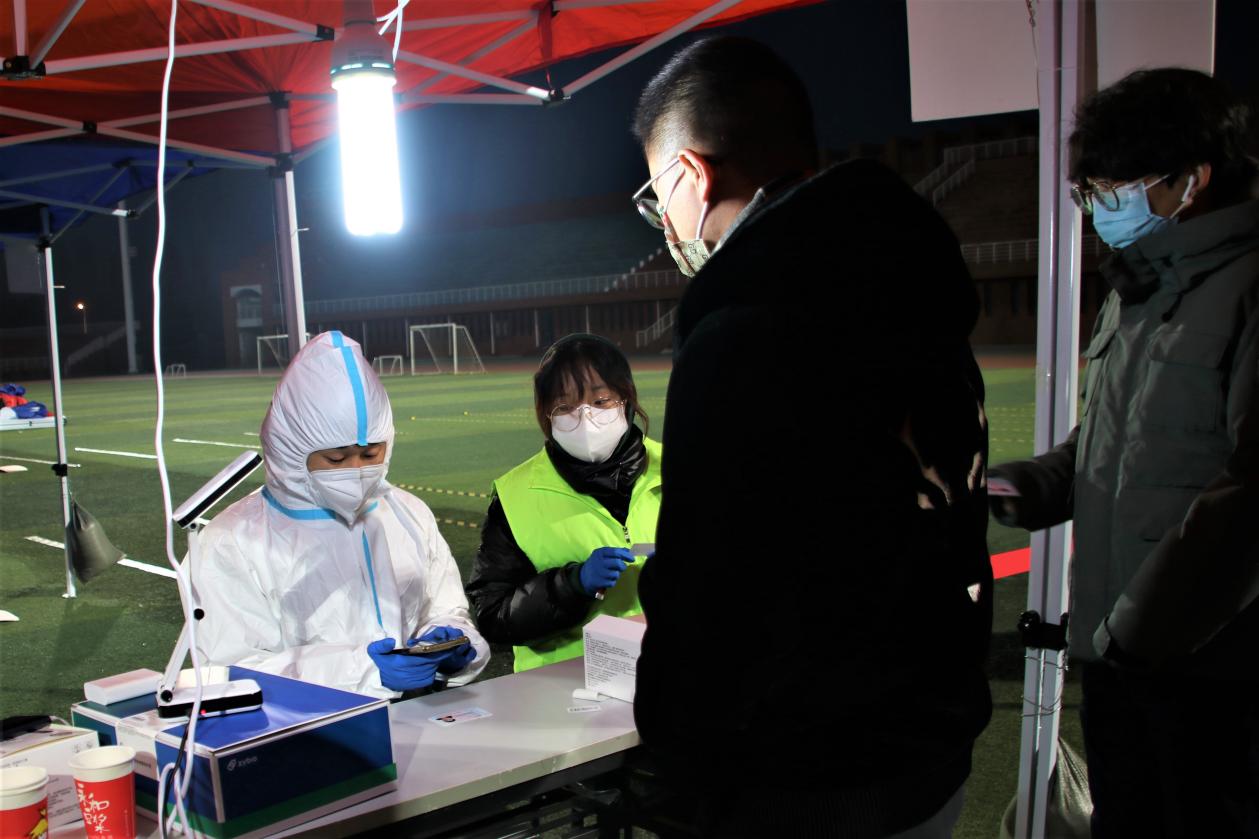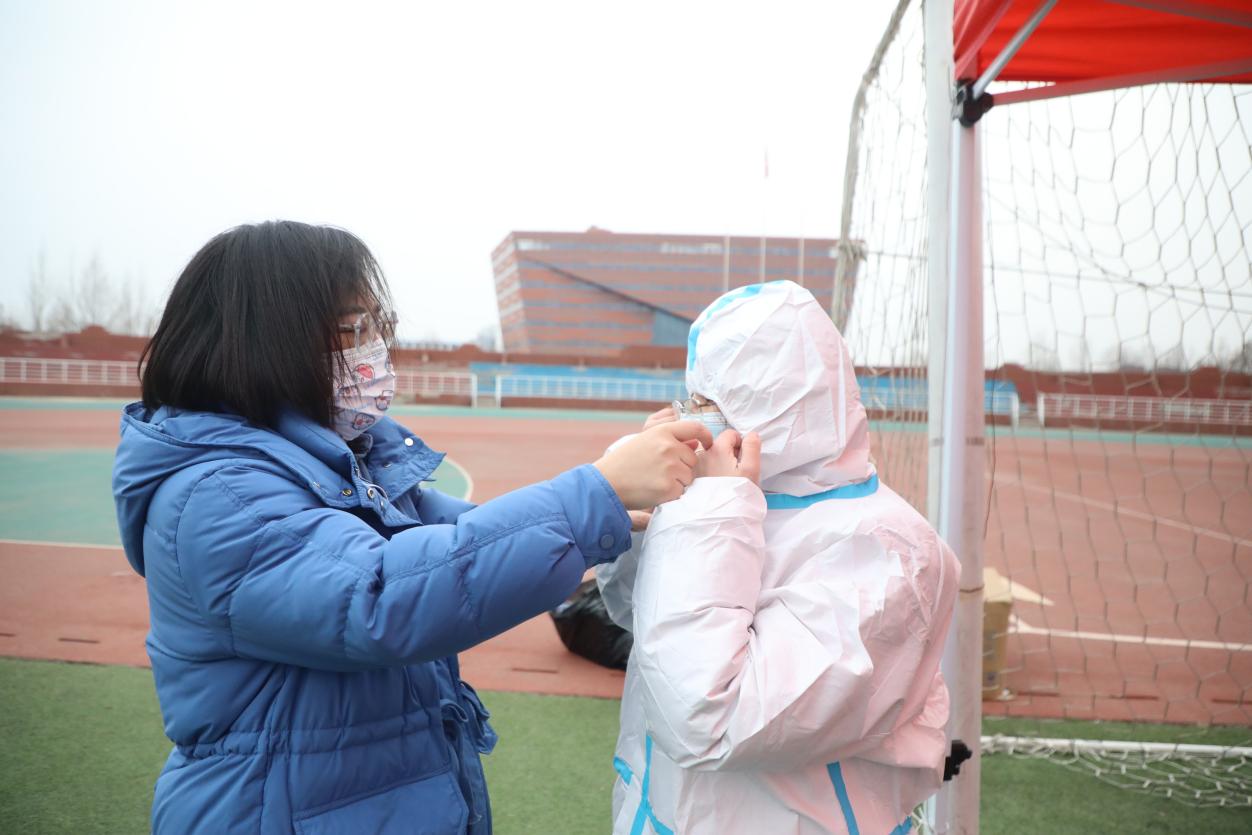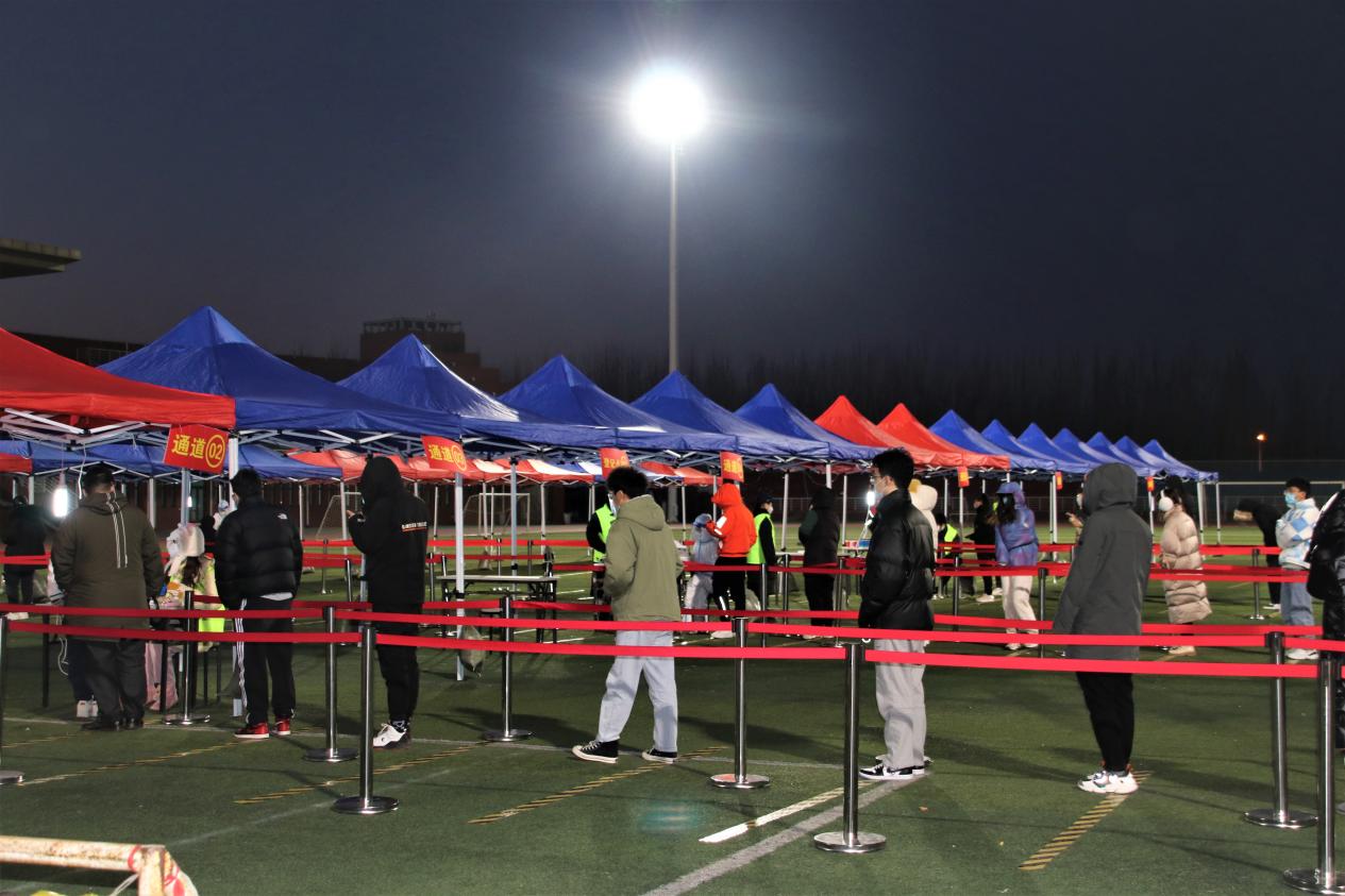 盡管室外氣溫低至零下,醫護人員保持著從一而終的工作態度,120名師生志愿者拿出了最大的熱情堅守崗位,保衛人員嚴陣以待、毫不松懈,后勤還貼心地為大家送上暖心的熱飲。參加檢測的教師、同學聽從指揮,積極配合,檢測過程高效有序。大家共同為打贏這場疫情防控阻擊戰貢獻自己的力量。