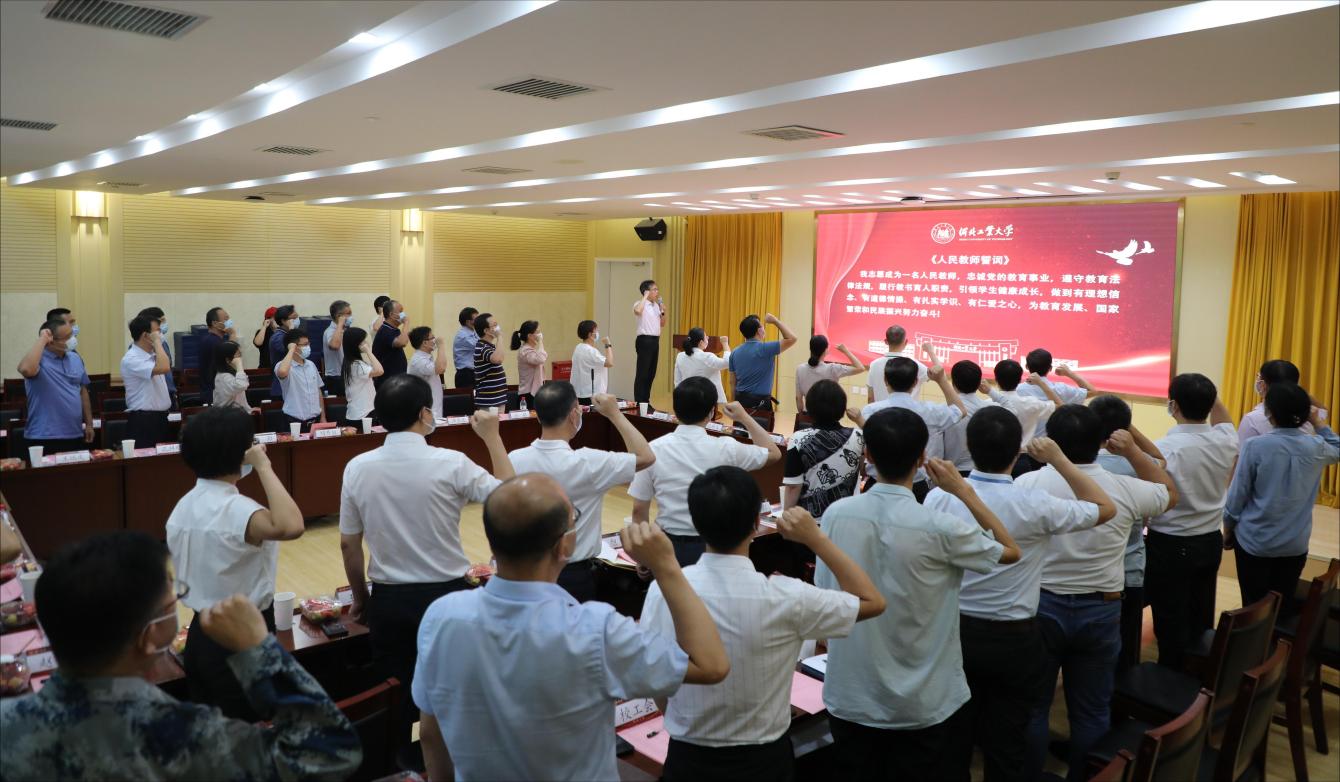 “我志愿成為一名人民教師……”座談會在莊嚴的宣誓聲中開始,賀立軍帶領全體參會教師重溫《人民教師誓詞》,回顧初為人民教師的光榮時刻,銘記一名人民教師的誓言與承諾,堅守立德樹人初心、擔當教書育人使命。