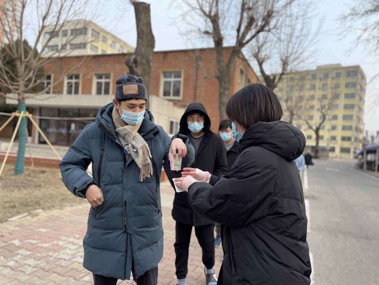 “轉眼我們已經做完三輪核酸檢測了,大家在寒風中排隊等候難免無聊,我們想為大家增添些不一樣的東西。”