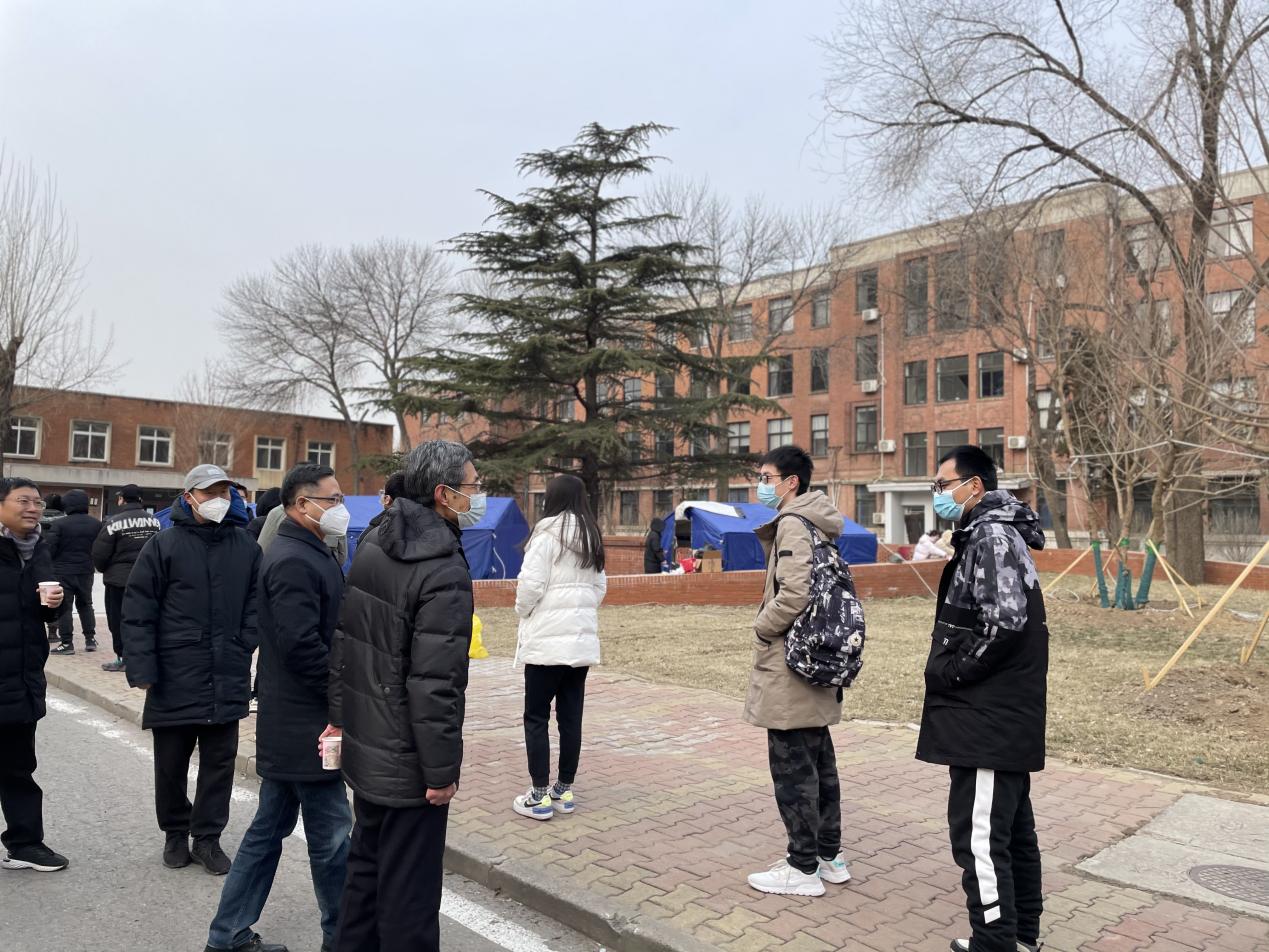 在核酸檢測的等候現場,除了歌聲,還洋溢著濃濃的“暖”意,傳遞著暖暖的溫情。學院黨委副書記兼副院長李睿給志愿者同學們分發提前備足的暖貼,讓大家在志愿服務中保持溫暖。志愿者同學們為排隊同學們遞上一杯熱氣騰騰的姜糖水,驅散冬日寒冷,暖手又暖心。