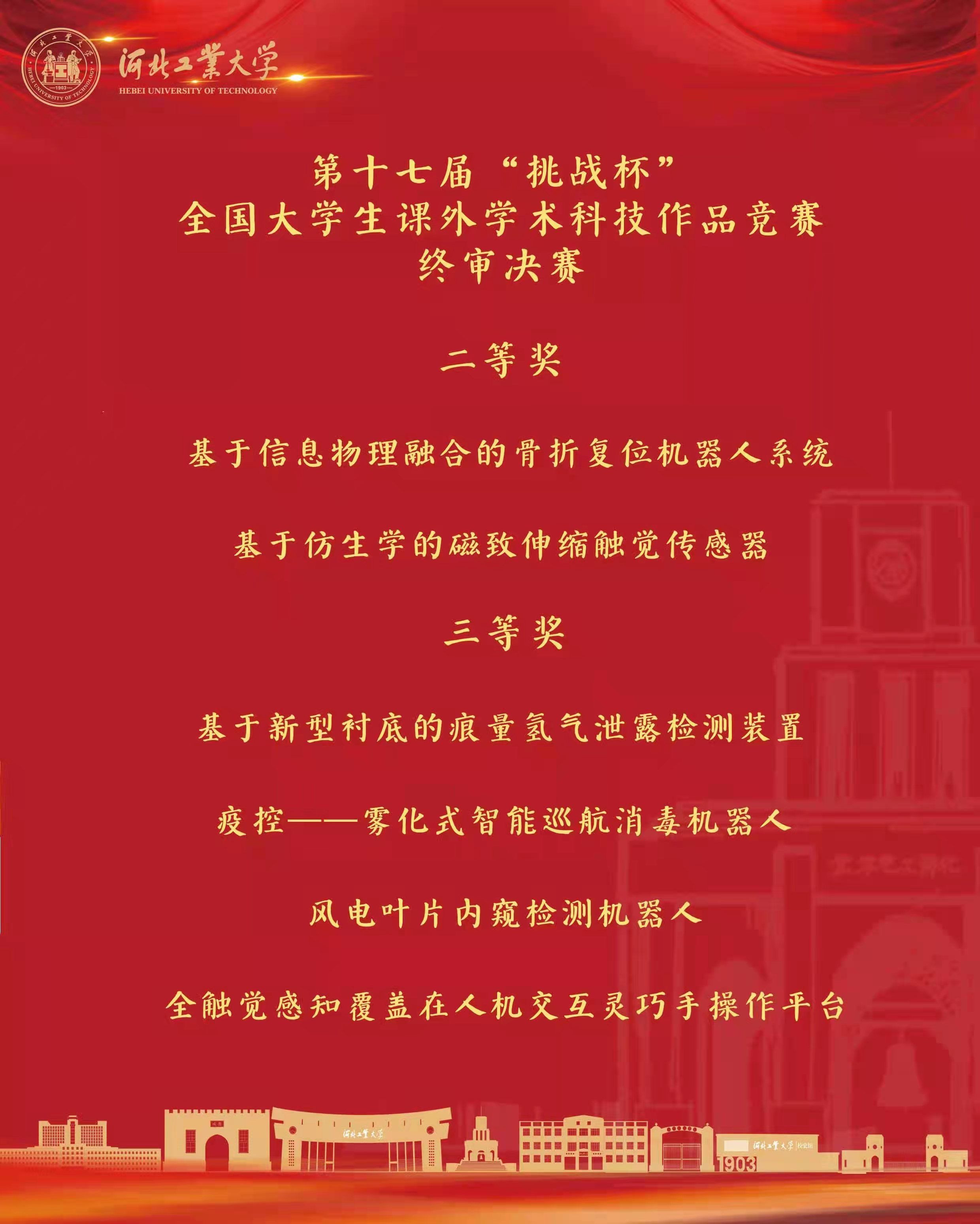3月29日,由共青團中央、中國科協(xié)、教育部和全國學聯(lián)主辦的第十七屆“挑戰(zhàn)杯”全國大學生課外學術科技作品競賽終審決賽獲獎結果公布。我校所推報6項作品全部獲獎,團中央擬授我校二等獎2項,三等獎4項,總分為160分,是近年來我校在“挑戰(zhàn)杯”國賽中最佳成績。此外,紅色專項賽我校獲得全國二等獎1項。