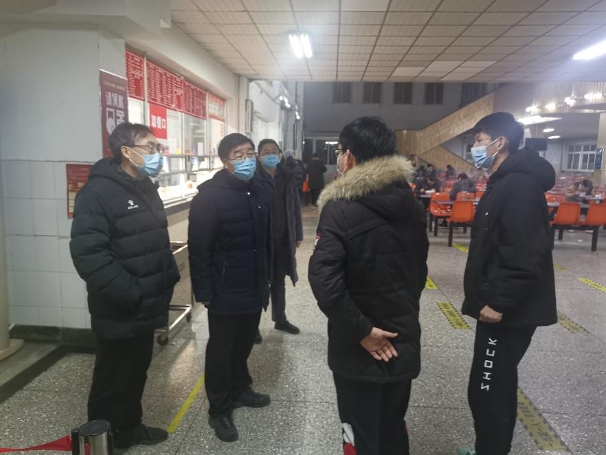 1月18日下午,校長韓旭、黨委副書記賀立軍采用“四不兩直”方式到紅橋校區三個院就食堂飲食、值班值守和疫情防控工作檢查指導。