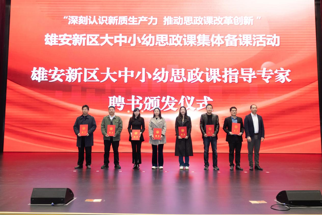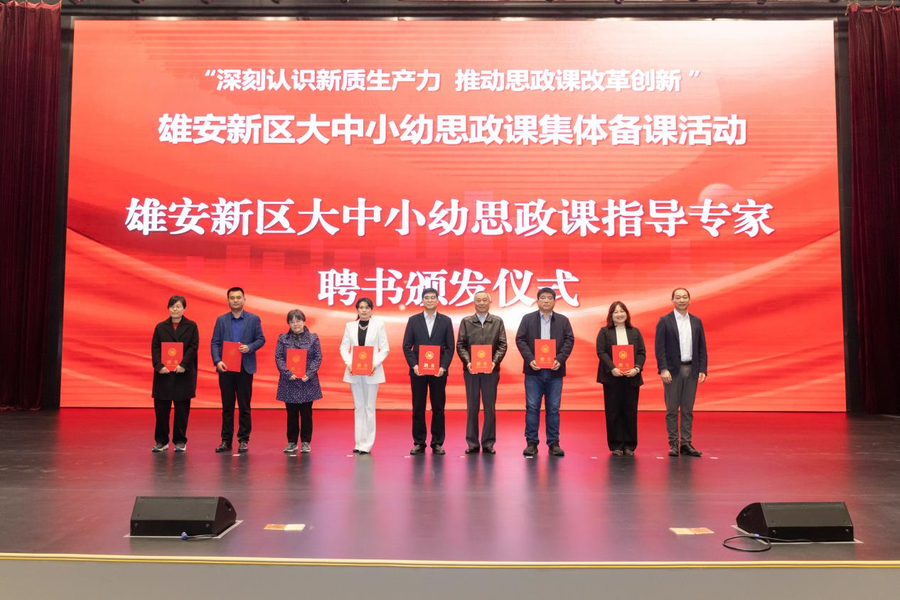 活動中,主辦方播放了《“未來之城 拔節生長”思政課》視頻推介片和《“未來之城 拔節生長”智慧雄安、科技之城》視頻片,并進行雄安新區大中小幼思政課指導專家聘書頒發儀式。