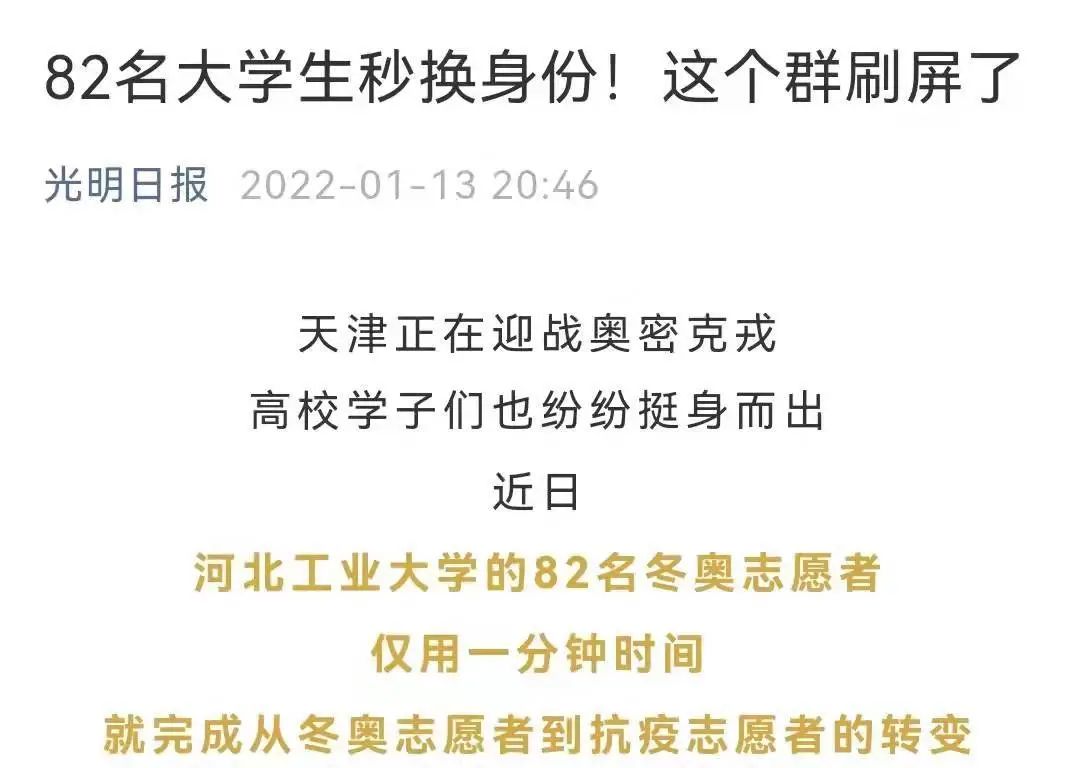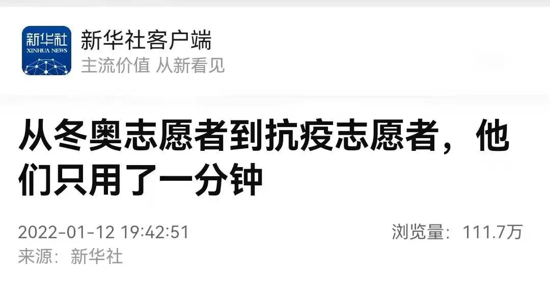 就完成從冬奧志愿者到抗疫志愿者的轉變