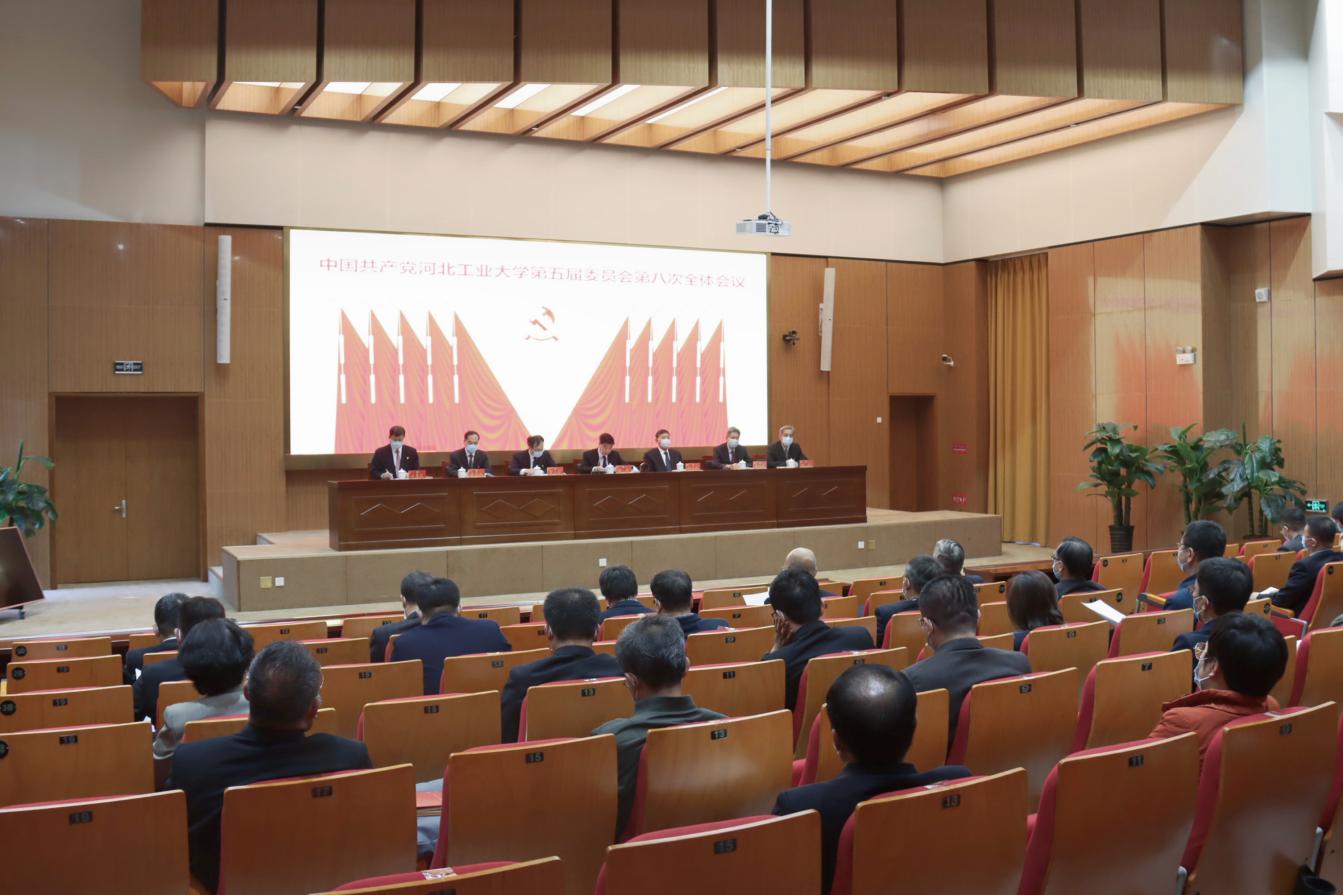 11月3日,中國(guó)共產(chǎn)黨河北工業(yè)大學(xué)第五屆委員會(huì)第八次全體會(huì)議在機(jī)材樓報(bào)告廳召開。會(huì)議學(xué)習(xí)傳達(dá)了黨的二十大精神和河北省委十屆三次全會(huì)精神,聽取了校黨委書記韓旭代表學(xué)校黨委常委會(huì)所作的工作報(bào)告,審議通過了《中國(guó)共產(chǎn)黨河北工業(yè)大學(xué)第五屆委員會(huì)第八次全體會(huì)議決議》。全會(huì)由韓旭主持。