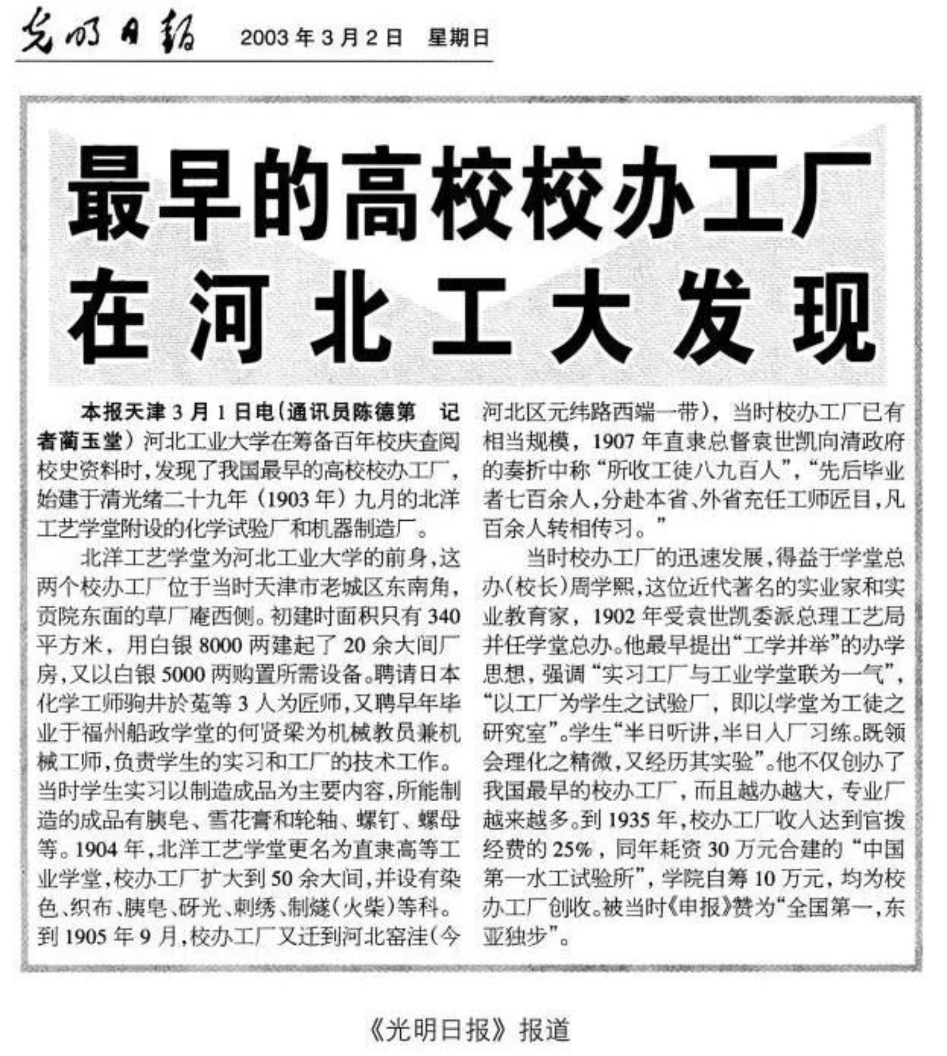 崇科學 篤工藝 津門首創工學堂