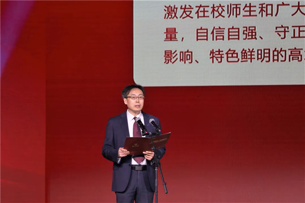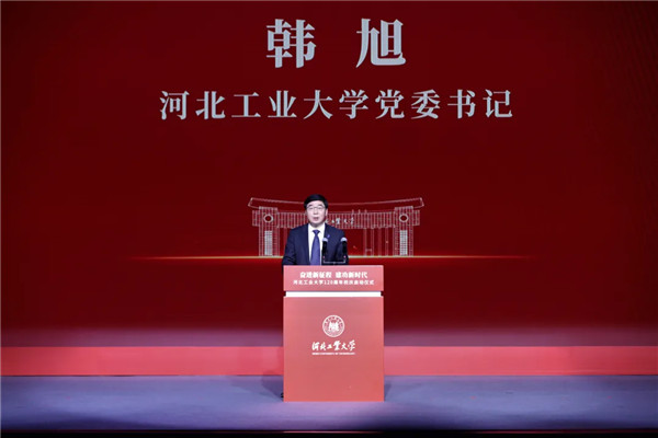 在全場熱烈的掌聲中,學校黨委書記韓旭發表了熱情洋溢的致辭。他表示,河北工業大學的辦學歷程是一部與近現代民族工業發展息息相關、與國家高等工程教育緊密相連的發展史。在過去的百余年里,一代代河北工大人用真抓實干、砥礪奮進書寫了波瀾壯闊的光輝篇章。特別是近十年來,學校堅持以習近平新時代中國特色社會主義思想為指導,全面貫徹黨的教育方針,堅持社會主義辦學方向,不斷深化體制機制改革,以堅如磐石的理想信念培根鑄魂,以放眼未來的遠大胸襟謀求發展,以立德樹人為根本任務培養人才,以“落地沖高”的積極行動服務社會,以兼容并包的開放態度展現作為,以開拓創新的系統思維智慧升級,以慎終如始的嚴謹態度共克時艱,以舍我其誰的精神貢獻河工力量,不斷加快學校高質量內涵式發展。