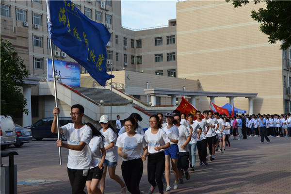 隨著河北海洋學會秘書長、河北工業大學海洋科學與工程學院黨委書記張宏標宣布活動開始的“出發”口令,師生按照分組有序出發,在校園、操場進行慢跑。“海洋強國,酷跑強體”的口號一路伴隨慢跑隊伍,沖過終點。
