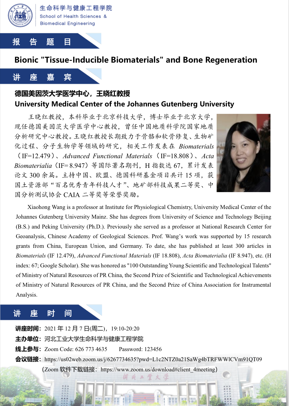 報告題目:Bionic "Tissue-Inducible Biomaterials" and Bone Regeneration