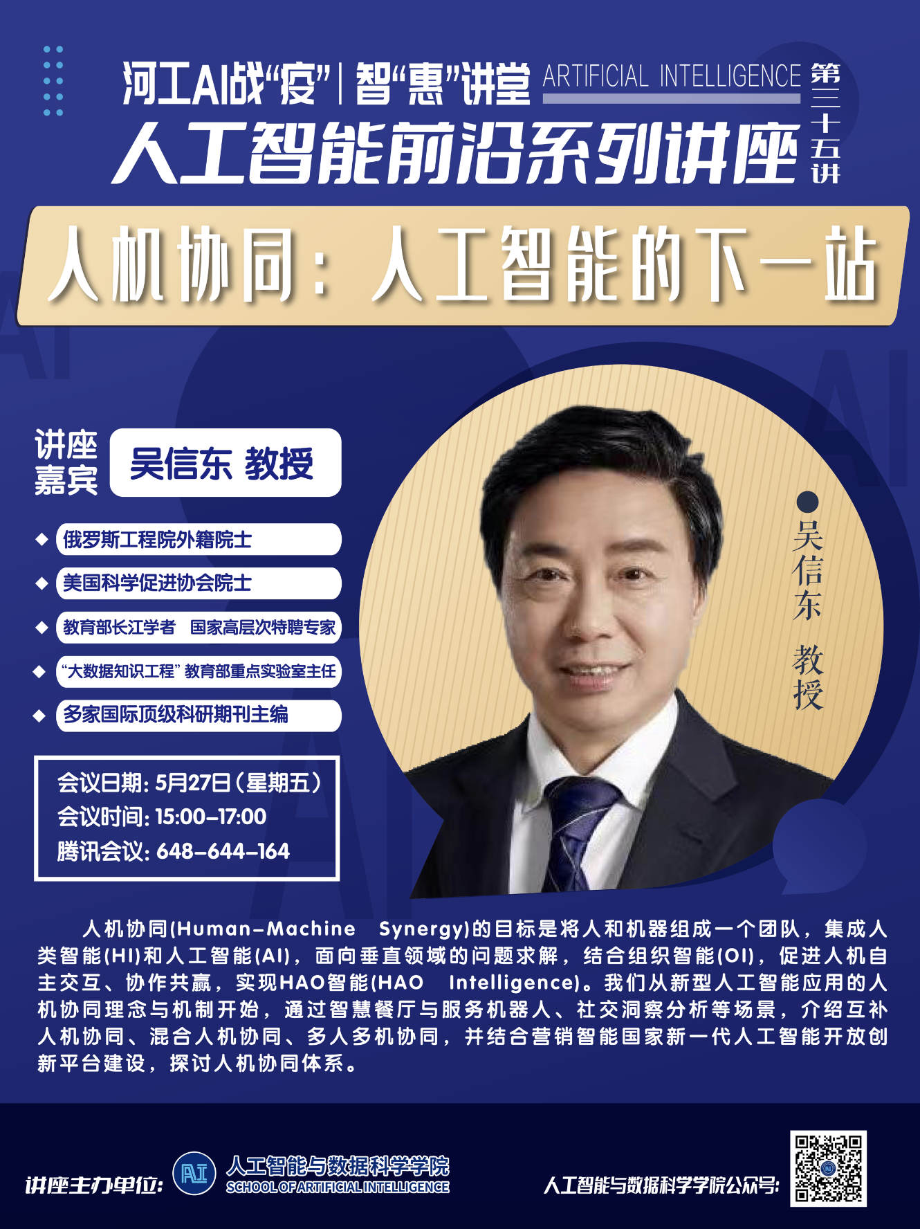 吳信東,俄羅斯工程院外籍院士,美國科學促進協會院士,IEEE Fellow([美國]電氣電子工程師學會會士),“大數據知識工程”教育部重點實驗室主任,“營銷智能”國家新一代人工智能開放創新平臺負責人。