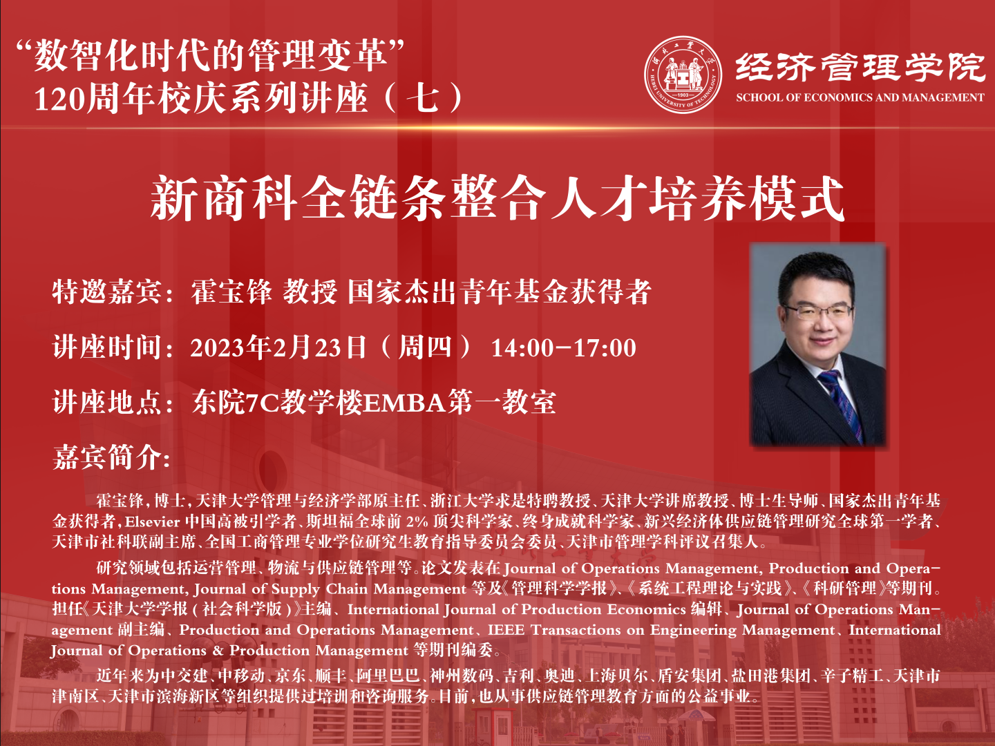 學術報告:“數智化時代的管理變革”120周年校慶系列講座(七)新商科全鏈條整合人才培養模式