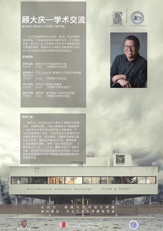 顧大慶,1978至1985年南京工學院本科和研究生,后留校任教,開始從事建筑設計基礎教學。1986年赴蘇黎世瑞士聯邦理工學院進修,于1994年獲得博士學位。1994年至今在香港中文大學建筑學院任教,現為教授。主要研究領域為建筑設計教學,建筑設計理論和方法,建筑教育,以及香港現代建筑。著有《設計與視知覺》,《建筑設計入門》,《空間、建構與設計》等教學專著,近年來與專業指導委員會合作舉辦《全國建筑設計教師研習班》積極推動國內建筑教學的改革和發展。
