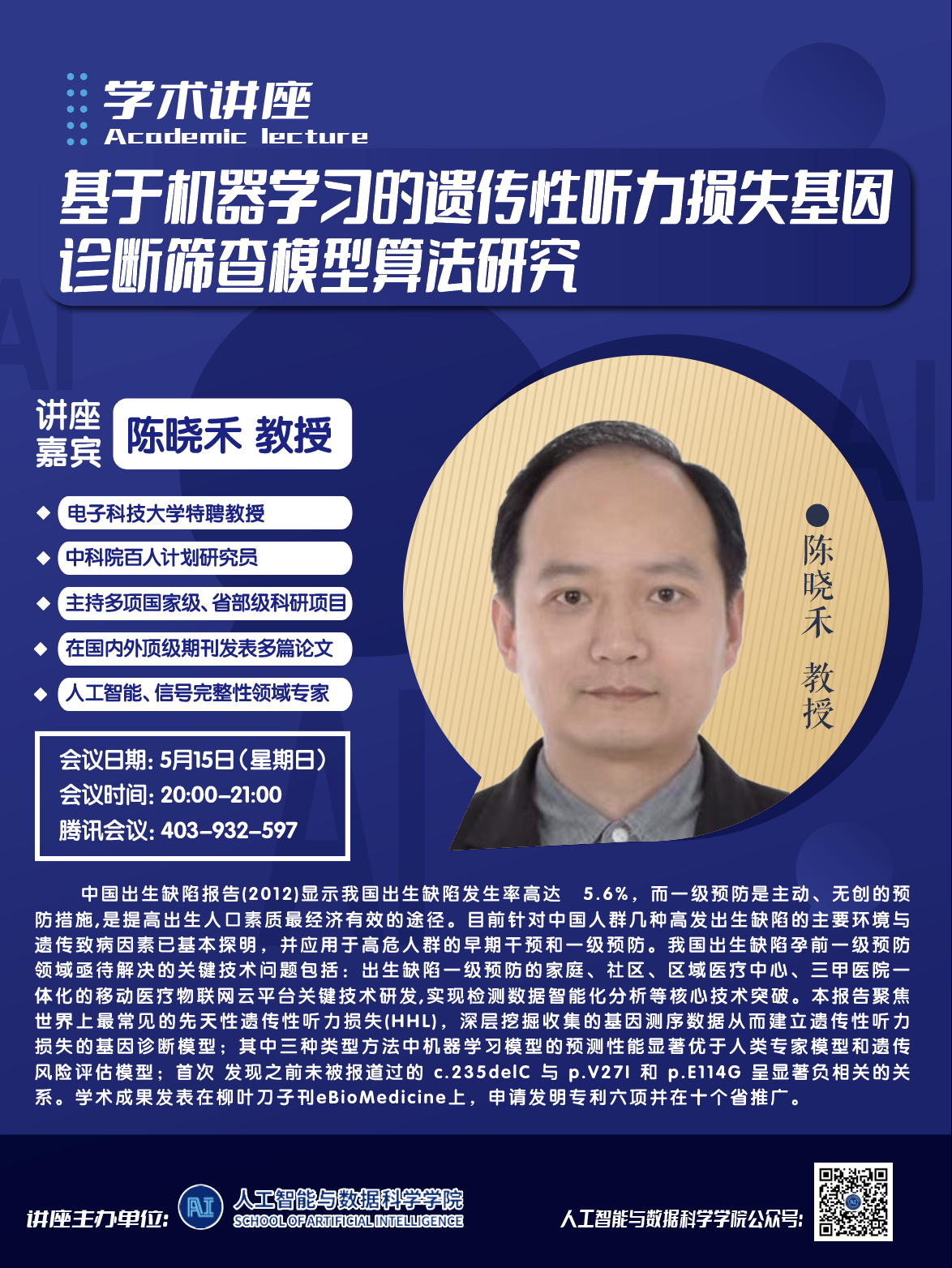 講座題目:基于機器學習的遺傳性聽力損失基因診斷篩查模型算法研究