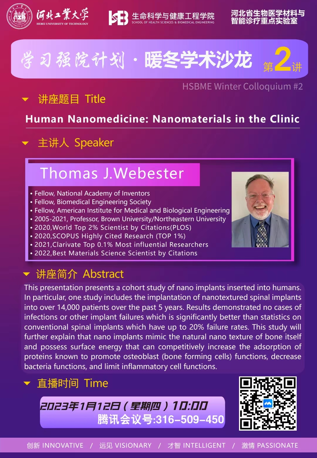 講座題目:Human Nanomedicine: Nanomaterials in the Clinic